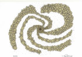 "Reverberation" A series of gold leaf and ink drawings with the mission to define a one word title for each drawing.