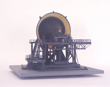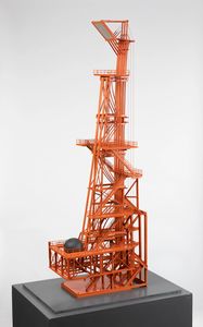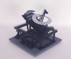 I This is a proposal for a 275'-0 steel tower using with 8 foot steel sphere at its base. The actual size of the of this Maquette was 6'-0 tall is was destroyed in shipment as a part of my traveling exhibition.
