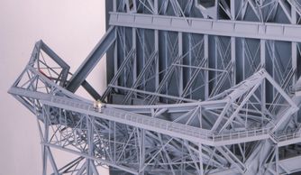 A proposal for the windowless AT&T building in Tribeca in the lower part of Manhattan. A series of reflective panels with huge screen of multiples colors with a walk way for the viewers. ( Detail )